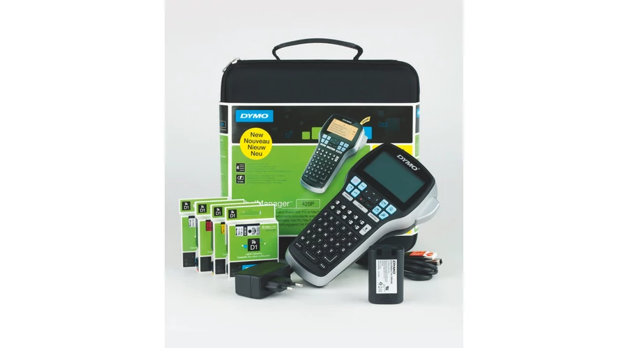 The LabelManager® 420P, a portable high-performance label maker, voted #1 label maker by Wirecutter, features a convenient long-lasting rechargeable battery pack, a large backlit display and a user interface with quick access to keys, fonts, and text effects. Connect the label maker to your PC and Mac®* and use free DYMO software to print barcodes or customize labels with your own fonts, logos and graphics. Plus, store up to 15 frequently-used labels for quick access and efficient printing. *Compatible with Windows® 7 or later and Mac OS® X v10.8 or later. Microsoft and Windows are either registered trademarks or trademarks of Microsoft Corporation in the United States and/or other countries. Mac and OS X are trademarks of Apple Inc., registered in the U.S. and other countries.