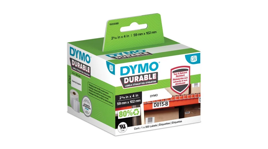 From metal tread plate and textured PVC to wood and glass, DYMO Durable Industrial LabelWriter Labels are the perfect solution for challenging labeling tasks. The industrial-strength adhesive and protective coating resist pealing from abrasion, heat, moisture, solvents and cleaners, making them ideal for shelving, floor markers and chemical storage. The labels are pre-cut for easy application and available in a range of sizes designed for specific tasks. They also use cost-effective direct thermal printing technology that prints without expensive ink or toner. UL recognized as a component to UL 969.
