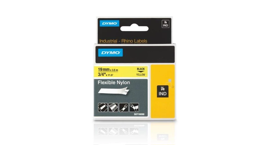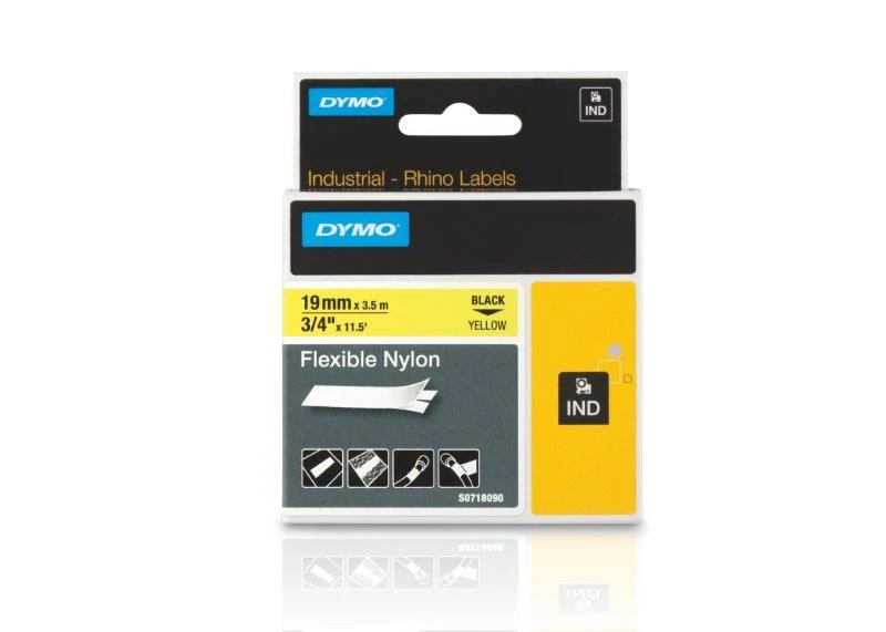 Flexible Nylon Labels 19mmx3,5m Black on Yellow (18757)