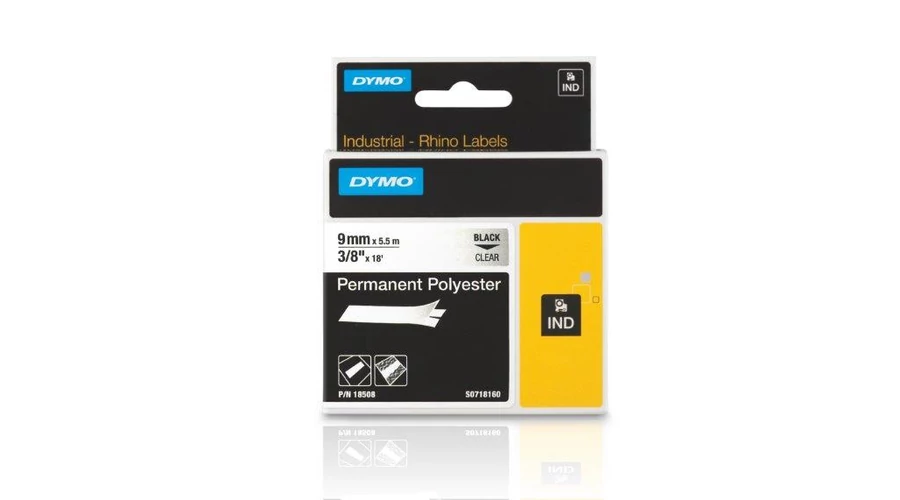 Permanent Polyester Labels 9mmx5,5m Black on Clear (18508)