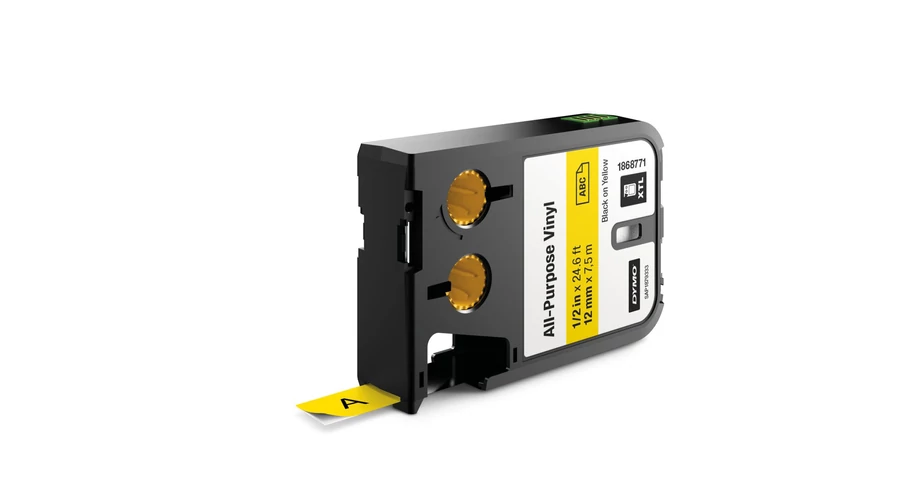XTL kazetta 12 mm x 7 m sárga alapon fekete betű